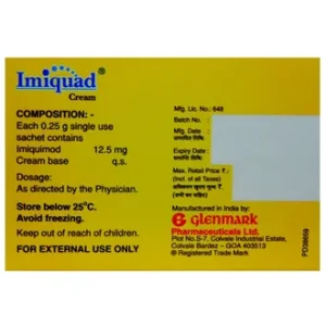 Imiquad Cream Sachet 3×0.25 gm is indicated in the treatment of basal cell carcinoma (a type of skin cancer), actinic keratosis (precancerous growths) and warts on the foreskin of the penis in men and on the vagina in women. Basal cell carcinoma (BCC) is a type of skin cancer where that appears as a slightly transparent bump on the upper layer of skin. Actinic keratosis is a scaly, rough patch on the skin that develops due to excessive sun exposure for many years. A wart is a small, fleshy bump on the skin or mucous membrane. Warts can spread from one body part to another.