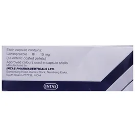 LAN-15 Capsule belongs to a group of antiulcer medicines called ‘proton pump inhibitors’. It is indicated for the treatment of gastroesophageal reflux disease, erosive esophagitis, and Zollinger-Ellison syndrome. It is also used to prevent and treat ulcers of the oesophagus.
