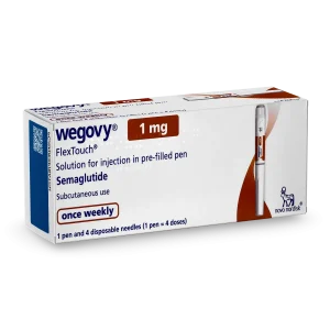 Wegovy is a weight loss injection for overweight adults or adults with obesity. It contains the active ingredient semaglutide, which mimics a naturally occurring hormone called glucagon-like peptide-1 (GLP-1). This hormone helps to regulate your blood sugar levels, and also sends signals to receptors in your brain that manage your appetite, allowing you to feel fuller for longer.