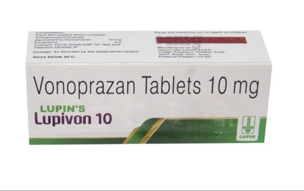 Vonoprazan 10 mg Tablet is a potassium-competitive acid blocker (P-CAB) used for the treatment of acid-related disorders such as gastroesophageal reflux disease (GERD), peptic ulcers, and erosive esophagitis. It works by reducing stomach acid secretion, providing rapid and long-lasting relief from heartburn, acidity, and related symptoms.