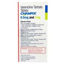 Champix (Varenicline) 0.5mg and 1mg tablets are clinically proven smoking cessation aids used under medical supervision. Varenicline, the active ingredient, works by binding to nicotine receptors in the brain, partially stimulating them to reduce withdrawal symptoms while simultaneously blocking nicotine from cigarettes, making smoking less satisfying.