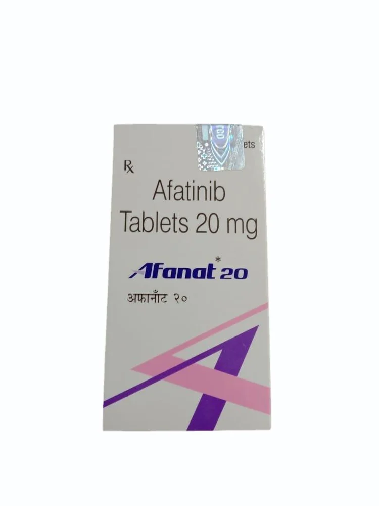 Afatinib 20 mg is an oral medication belonging to the class of tyrosine kinase inhibitors (TKIs), specifically targeting the epidermal growth factor receptor (EGFR). It is prescribed for the treatment of patients with metastatic non-small cell lung cancer (NSCLC) whose tumors have EGFR gene mutations (such as exon 19 deletions or exon 21 substitution mutations).