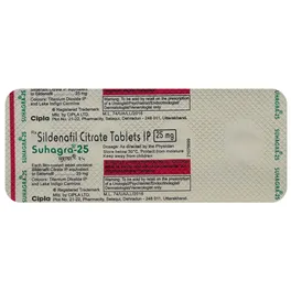 Suhagra-25 Tablet is primarily used to treat erectile dysfunction (impotence) in adult men. Additionally, Suhagra-25 Tablet may also be used to treat pulmonary arterial hypertension (high blood pressure in the lungs) in adults to improve the ability to exercise and to slow down clinical worsening.
