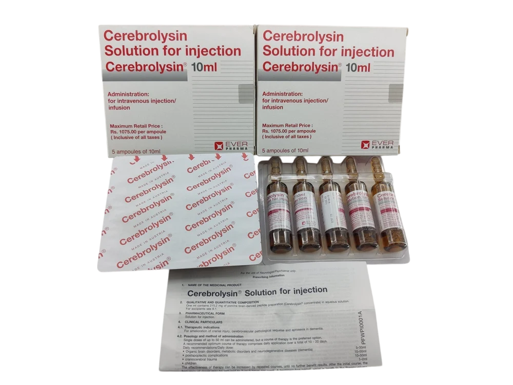 Cerebrolysin Injection contains Cerebroprotein Hydrolysate, a mixture of neuropeptides and amino acids. It is used to enhance cognitive function and support recovery in patients with neurodegenerative disorders or after a stroke, promoting neuronal repair and regeneration