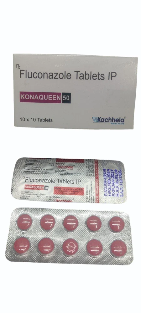 Konaqueen 50 MG Tablet is an anti-fungal drug. It is used to prevent and treat infections caused by fungi and yeasts. It acts by stopping the growth and multiplication of these organisms.