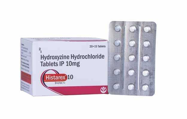 Vistaril 10 mg (Generic Hydroxyzine) is an antihistamine used to treat anxiety, tension, allergic reactions, itching, nausea, and sleep disturbances.