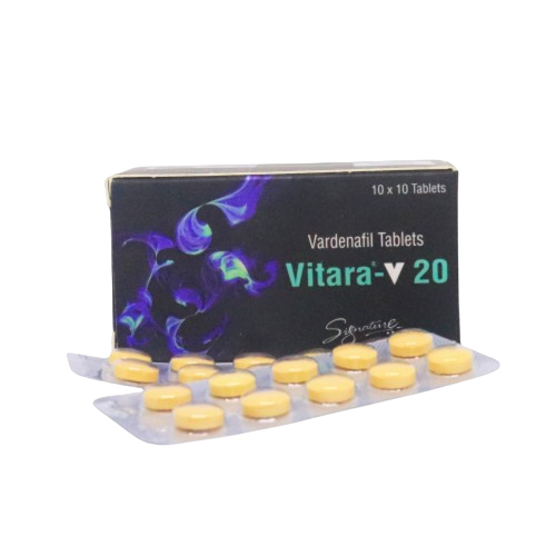 Vitara V 20 mg is a prescription medication that contains Vardenafil, which is used to treat erectile dysfunction (ED) in men. Vardenafil belongs to a group of drugs called phosphodiesterase type 5 (PDE5) inhibitors, which work by enhancing blood flow to the penis during sexual stimulation, helping to achieve and maintain a firm erection.
